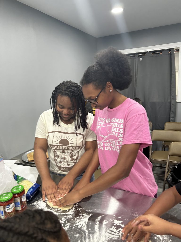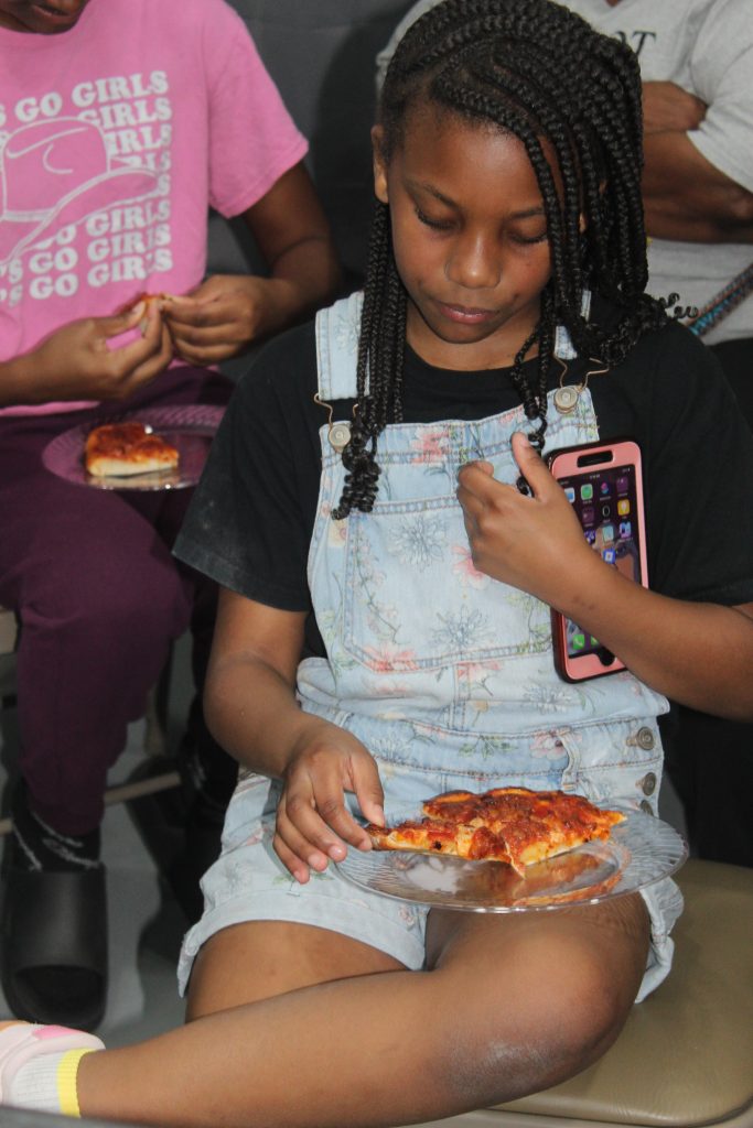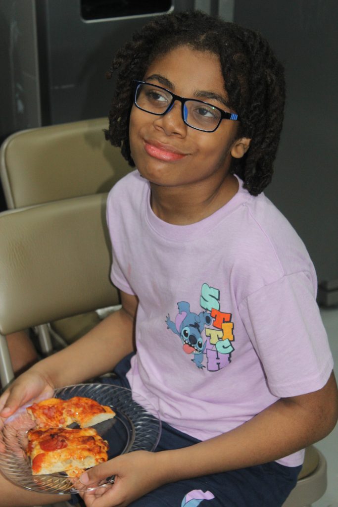 Once the pizzas were ready, we returned to the kitchen, washed our hands, sliced the pizzas, and enjoyed the results of our hard work. The pizzas turned out delicious, and the youth are already looking forward to their next cooking lesson.